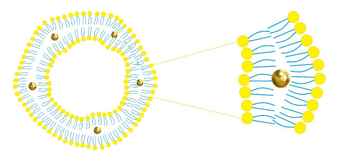 - Cardellini, J.; Caselli, L.; Lavagna, E.; Salassi, S.; Amenitsch, H.; Calamai, M.; Montis, C.; Rossi, G.; Berti, D. Membrane phase drives the assembly of gold nanoparticles on biomimetic lipid bilayers. J. Phys. Chem. C. Nanomater. Interfaces. 2022, 126, 4483–4494. [Google Scholar] [CrossRef] [PubMed]