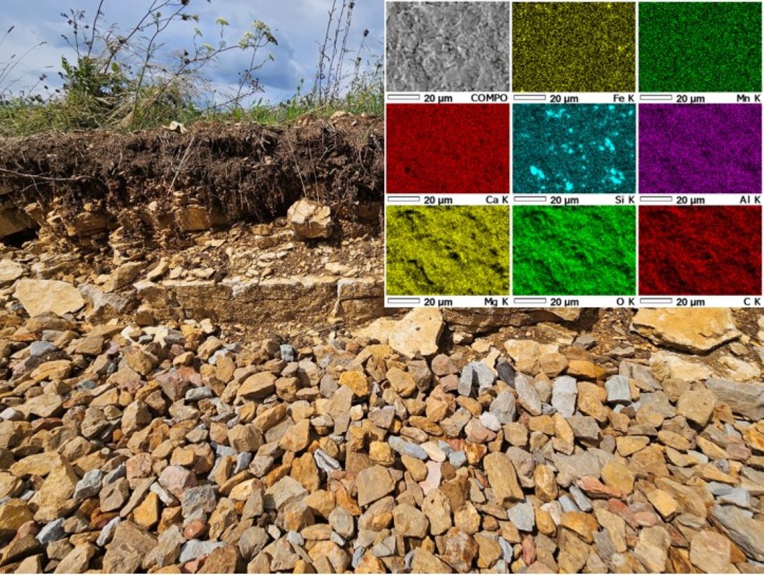 - X-Ray Fluorescence (XRF) results showed the presence of elements, not only those typical of carbonate minerals, but also elements such as: Al, Si, Fe, K, Na, Ti, Cr, Cd, Br, Cr, As, Mn, Zr, Co, Ni, Cu, Zn, Pb and Cl. Some of them may occur in minerals formed during diagenetic processes.
