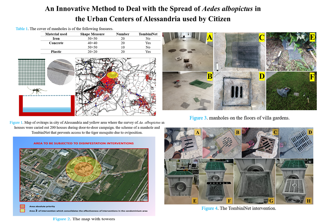 In public areas, the effectiveness of the TombiniNet was reduced due to the accumulation of debris such as falling leaves and cigarette butts. This necessitated the use of biological larvicides and IGRs as supplementary measures. The varying levels of participation from residents posed a challenge. Only 51% of the houses allowed access for inspection, indicating a need for increased community engagement and awareness. Considering the high number of manholes, that is the main micro breeding sites of Ae. albopictus, and considering that citizens will accept this measure, its implementation will become an irreplaceable measure for mosquito control and consequently lowering the health risks linked to this bloodsucking insect in case it become a VBD vector.