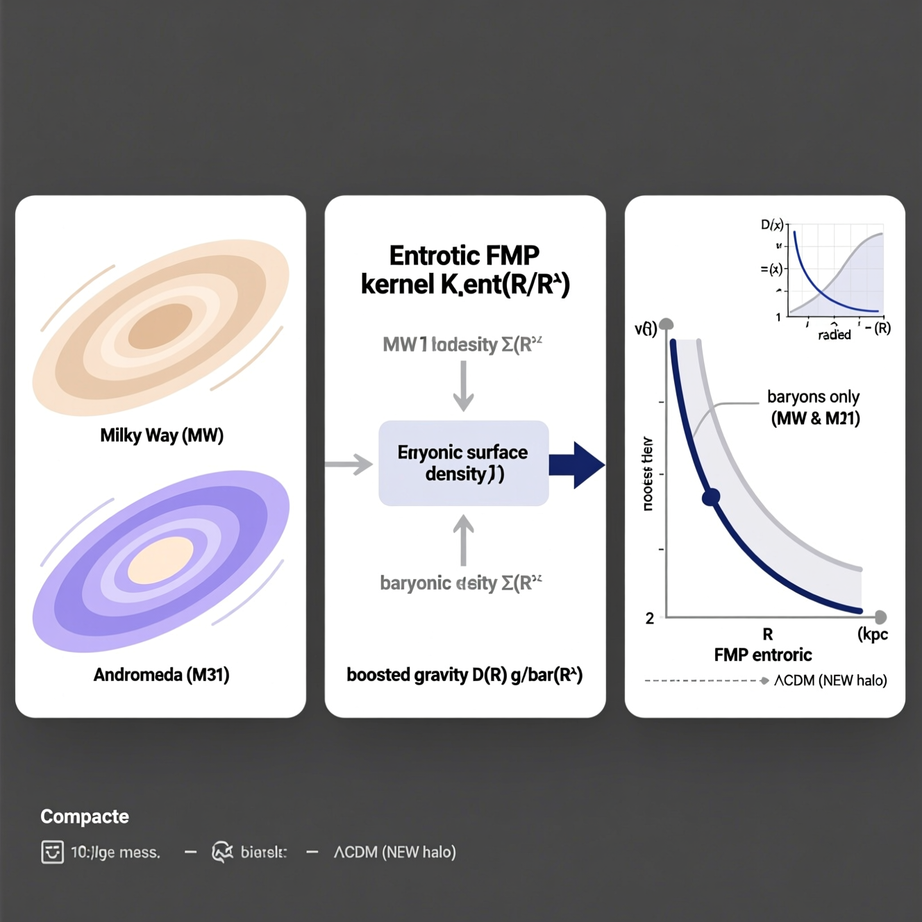 Future–Mass Projection (FMP) gravity is a non–local extension of general relativity in which the metric at a spacetime point couples to a weighted integral over the future stress–energy tensor along a closed time path. In earlier work, bilocal kernels in Fourier space of the form Ξd(k) = ε/(1 + k2/k2 0) were shown to lead, in the quasi–Newtonian limit, to configuration–space boost factors D(R)−1 ∝ K0(k0R) multiplying the baryonic acceleration, where K0 is a modified Bessel function of the second kind. This paper extends that framework by introducing an entropic response of the bilocal kernel to fluctuations in the baryonic surface density and tests the resulting effective boost function against the rotation curves of the Milky Way (MW) and M31 (Andromeda). Instead of treating each galaxy separately, we construct a phenomenological entropic boost D(x) as a function of scaled radius x = R/Rd, where Rd is the exponential disk scale length. The parametrisation D(x) = 1 + ε1 h 1 − e−(x/xs1)2i + ε2 h 1 − e−(x/xs2)2i is understood as an effective representation of a superposition of K0–type modes. We fit the global parameters (xs1, xs2, ε1, ε2) jointly toMWand M31 using fixed bulge+disk mass models from Sofue, while keeping track of the dominant baryonic systematics (thin– disk geometry and gas disks). For the stellar bulge+disk alone we find a joint best fit at xs1 = 0.50, xs2 = 3.0, ε1 = −0.231, ε2 = 1.50. This corresponds to a mild suppression of the effective gravity in the inner disk, D(0.5) ≃ 0.90, and an outer–disk boost asymptoting to D(x ≳ 5) ≃ 2.18 (velocity enhancement √ D ∼ 1.48). Applied to the Milky Way rotation curve of Sofue (2020) in the range 2–60 kpc and to a refined M31 curve in the range 2–40 kpc, the model reproduces the overall amplitude and radial trend with fractional root–mean–square deviations of ∼ 13% (MW) and ∼ 12% (M31). However, the formal reduced chi–squares are large (χ2 ν ≈ 25 for MW and χ2 ν ≈ 5 for M31), indicating that the combination of our simplified baryonic modelling and overly rigid kernel is not yet statistically acceptable. We estimate that including a gas disk with massMg ∼ 1010M⊙ and scale length Rg ∼ 7 kpc would raise the outer baryonic rotation speed by ∼ 5–8kms−1 in M31 beyond R ≳ 20 kpc, and yield a similar effect for the Milky Way, reducing the required outer boost amplitude ε2 by roughly 10–15%. Conversely, the spherical approximation for the stellar disk is known to overestimate the circular speed by ∼ 10–15% near R ≈ 2Rd compared to a thin exponential disk. These two systematics partially compensate each other but do not remove the need for a non–trivial boost. Within these caveats, a single, smooth boost in scaled radius is sufficient to bring MW and M31 rotation curves to within ∼ 10–15% in circular velocity using baryons only, suggesting that entropic FMP gravity is a promising but not yet competitive alternative to ΛCDM halo models on galaxy scales.